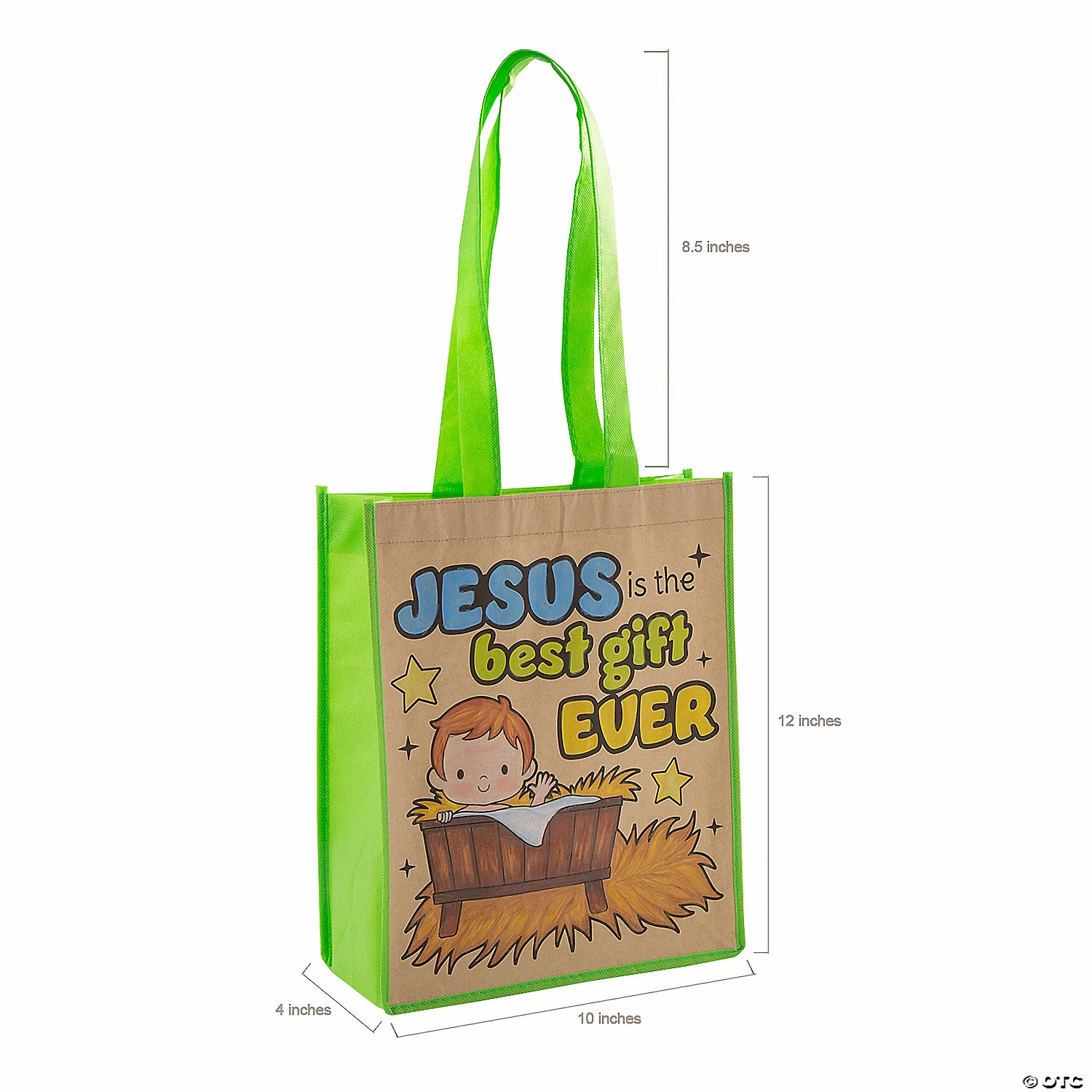 β’ Durable Quality: Made of sturdy nonwoven material, this sturdy tote bag wonβt let you or your accessories down. Plus, you can easily store the reusable bag away until you need it again.β’ Fun Crafts: With some imagination, this tote bag could be your next creative project. Perfect as a Sunday School craft, this tote bag just needs your personal touch to come to colorful life! β’ Eco-friendly: Save a tree and go green with this eco-friendly tote bag that is perfect for carrying books, folders and small art supplies. Mother Earth is sure to appreciate the gesture, so go ahead and gift this tote bag to your friends and family while youβre at it! Product Description: Tis the season to be coloring! Celebrate faith and Christmas with these handy tote bags featuring cute Nativity art that is just waiting to be decorated by kids at Sunday School, home or a church holiday party. Each bag has plenty of room inside to carry everyday essentials or presents while gift shopping. Β© OTC Size: 12″ x 10″ with 8 1/2″ handles.Quantity: 12Material: Nonwoven polypropylene.