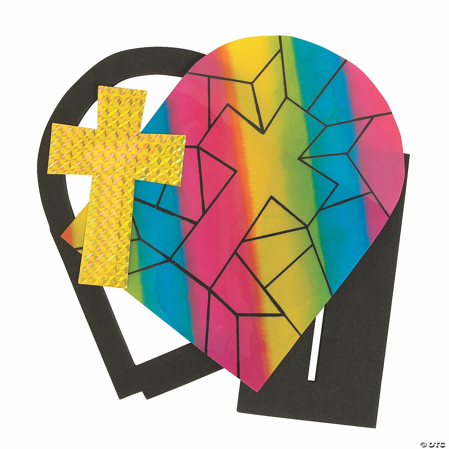 Bring the beauty of stained glass to kiddos! A fun and faith-filled addition to religious kidsβ crafts, this stand-up accent features a shimmering cross design that really looks like stained glass. Place this in a window sill and watch the light beautifully filter through it! Includes self-adhesive foam pieces, foil stickers and acetate sheets. 6″ x 3″ x 7″ Makes 12. All craft kit pieces are pre-packaged for individual use. Kits include instructions. Β© OTC3D Stained Glass Window Craft Kit Instructions
