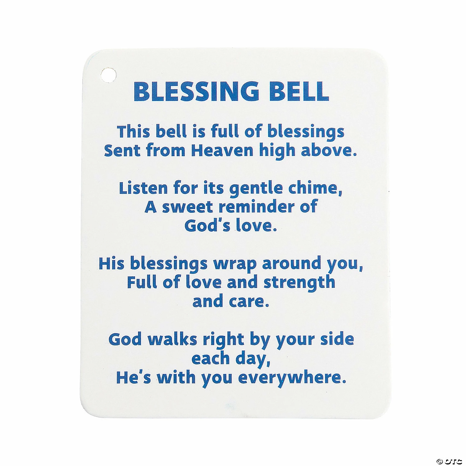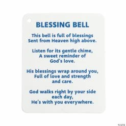 Teaching Sunday School kids about Godβs love and blessings is easier with this fun craft kit. Kids can create their own blessing bell to remind them that blessings ring from above. Each completed bell comes with a card explaining the significance of the bell, helping kids and their families to understand that God is always with them. Includes paper, self-adhesive foam pieces, plastic, metal and satin cording. 3″ diam. x 3 1/2″ Makes 12. All craft kit pieces are pre-packaged for individual use. Kits include instructions. Β© OTCBlessings Bell with Card Instructions