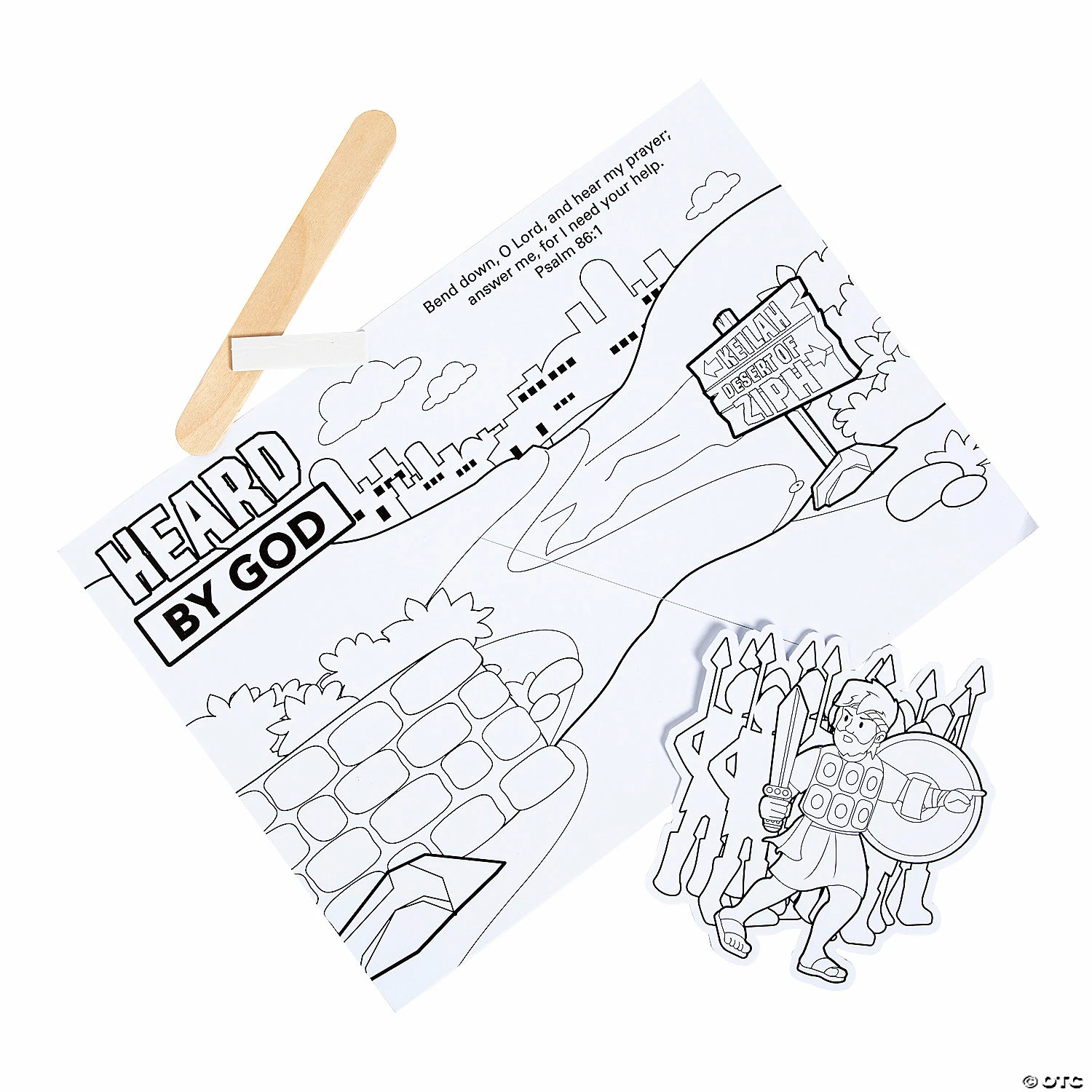 Keep them engaged in your Bible lessons with this fun religious activity for kids when you’re sharing the story of David escaping Saul in the book of Samuel. Includes wooden craft sticks and self-adhesive foam pieces. Cardstock. (1 dozen per unit) 12″ x 8 1/2″ Packaged for individual use. Β© OTCColor Your Own David Escapes Saul Pop-Up Activities Instructions