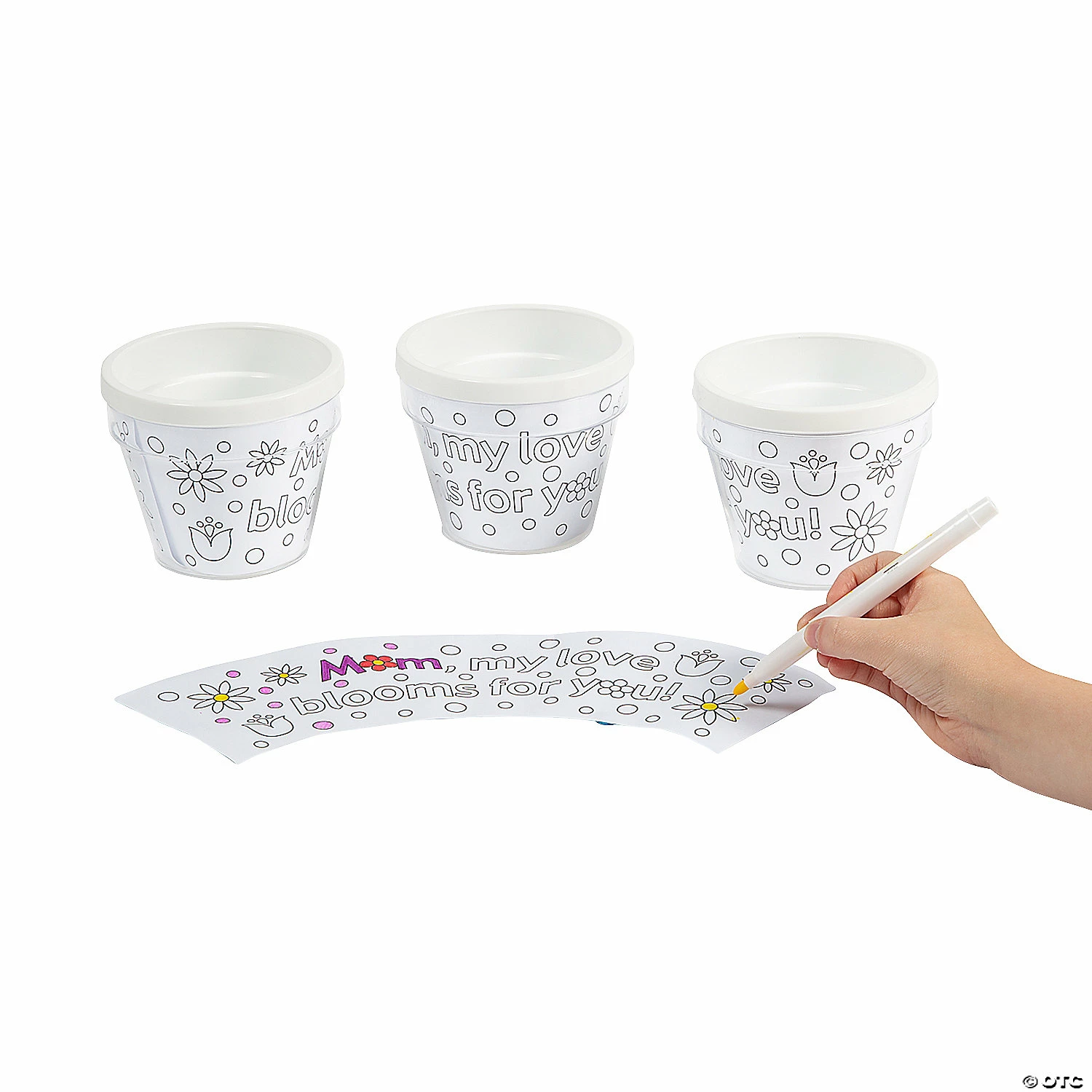 β’ HAVE A BLAST! β When it comes to creating art, the possibilities for fun are endless! Kids will have a blast coloring in their creations. As they color their flowerpots, ask them to share a special story about Mom.β’ SPARK IMAGINATION & PROMOTE SELF-EXPRESSION β Give your little artists wings with this flowerpot coloring project. Let kids choose their colors and watch their creativity take flight.β’ BOOST CONFIDENCE β Completing a coloring page, big or small, will give kids a great sense of accomplishment and improve their self-esteem. They will beam with pride when they see this finished masterpiece at home with a new plant in it.Product Description:Make this coloring craft for Mom! This is a great classroom activity for kids of all ages. Mother’s Day will bloom bright when little ones use their creativity and excitement to create a colorful, one-of-a-kind DIY gift with this kids’ craft. Bundle with a herb or flower seed packet to make it complete (not included). Pulls apart and snaps closed easily. Each pot includes 1 paper insert. All craft kit pieces are pre-packaged for individual use. Kits include instructions and extra pieces. Remove insert before washing. Markers sold separately online. Size: 4″Quantity: 12Material: PlasticΒ© OTC