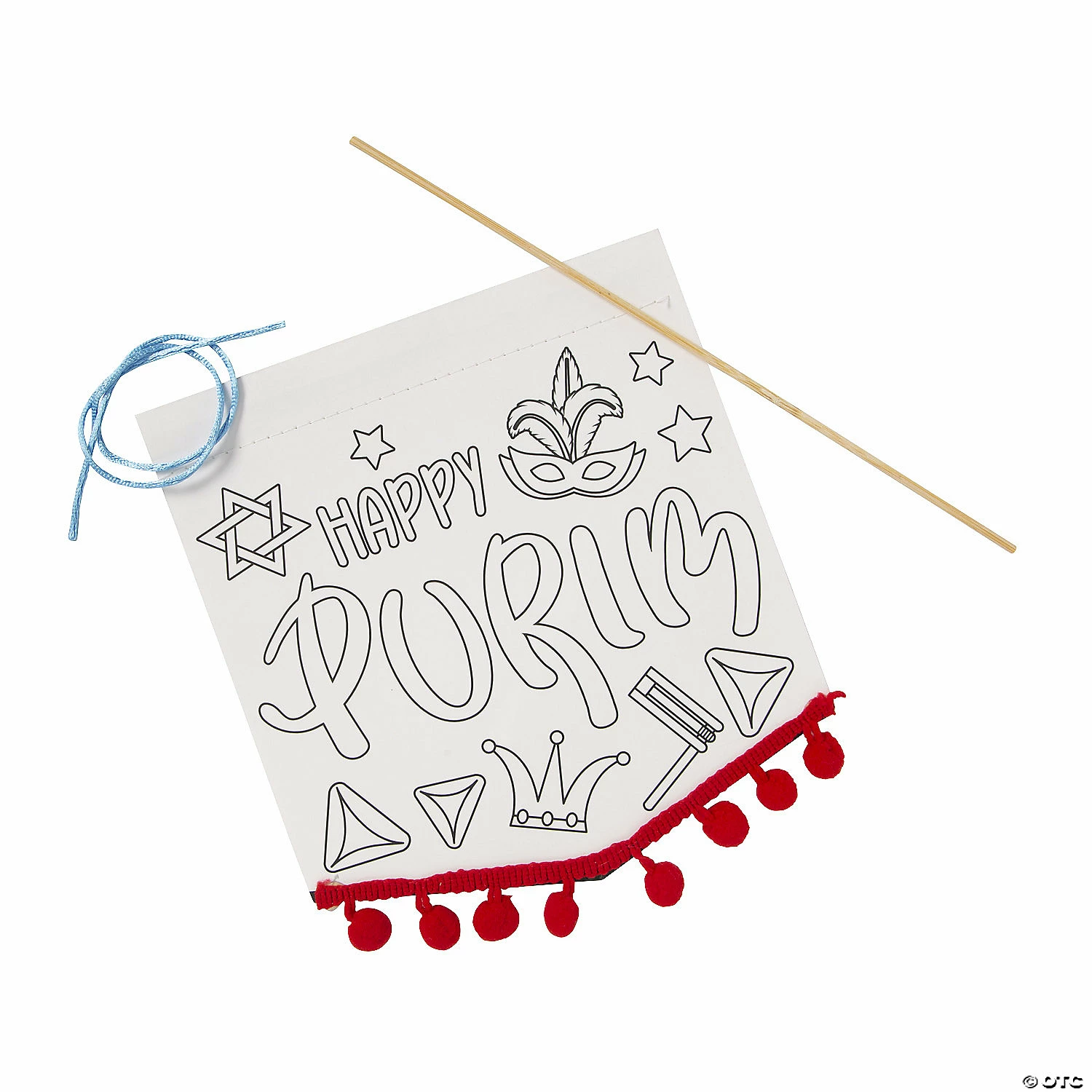 Kids can make a unique Purim banner to display as decoration with the help of this fun and simple craft kit. Kids color the banner using their own crayons or markers (sold separately on this website) and then easily assemble the banner for a completed sign that celebrates Purim. Add craft activities to this yearβs Purim festivities with this fun kit. Includes cardstock, wood dowel and satin cording. 7″ x 8″ Makes 12. All craft kit pieces are pre-packaged for individual use. Kits include instructions. © OTC