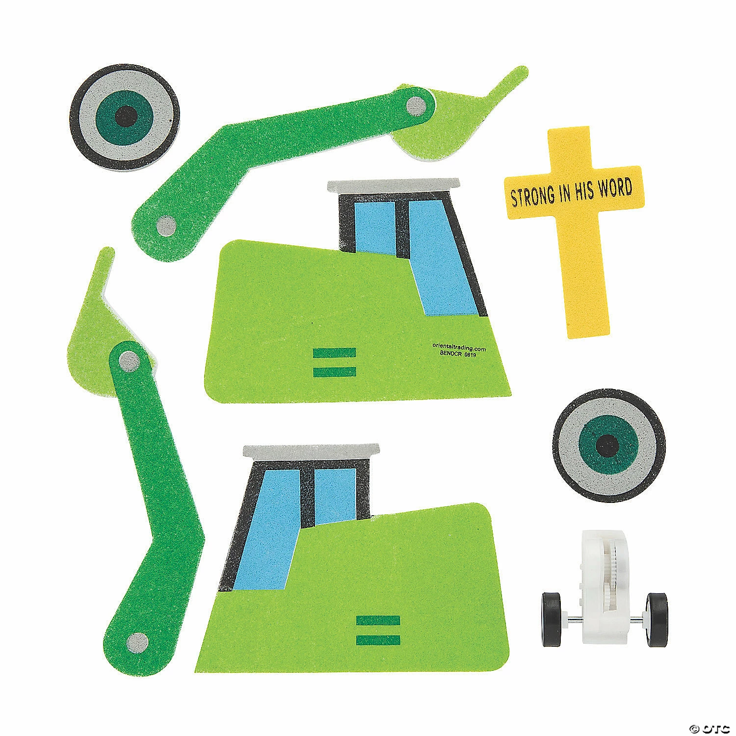 Nothing fits into a Construction VBS theme better than building your own toys! These truck pull-back racers are a great addition to your VBS supplies and VBS crafts, and they’ll be loads of fun for everyone. Build up your supply of Construction VBS supplies by searching this site. Includes self-adhesive foam pieces and plastic pullback wheels. 4″ x 2 1/2″ Makes 12. All craft kit pieces are pre-packaged for individual use. Kits include instructions. © OTC