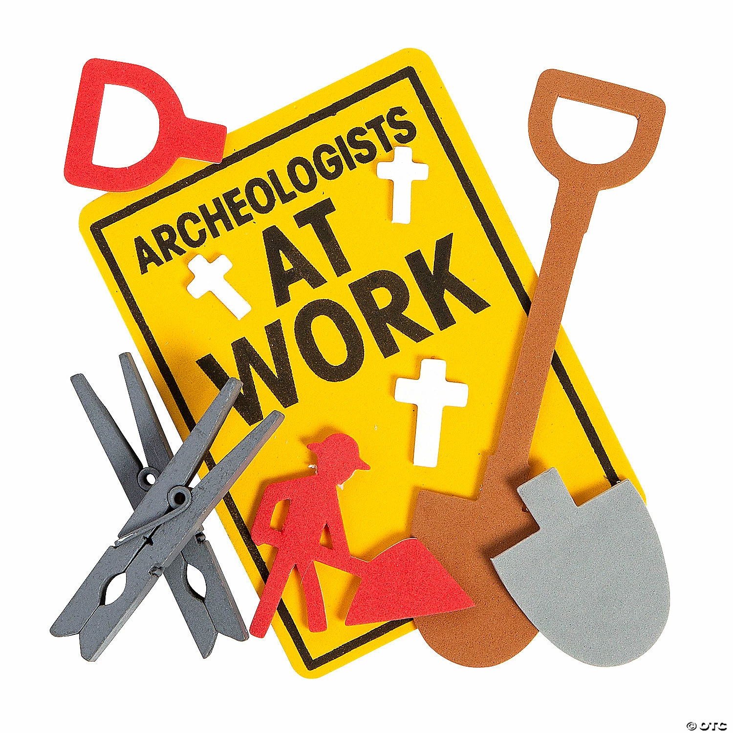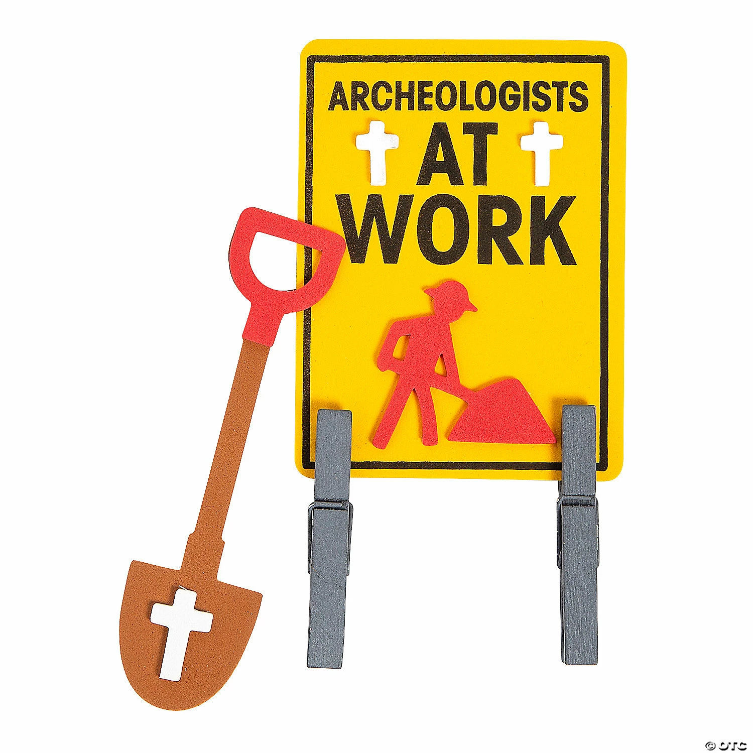 This fun, religious craft for kids turns into a caution sign! As part of our Dig VBS theme, it is printed with crosses and “Archaeologists at work.” A great addition to Vacation Bible School activities, kids will love the on-theme fun! Includes self-adhesive foam pieces and wooden clothespins. 5 1/2″ x 7 1/2″ Makes 12. All craft kit pieces are pre-packaged for individual use. Kits include instructions. Β© OTCDIG VBS CLOTHESPIN Instructions