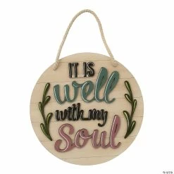 Welcome visitors with this heartwarming sign. Stating the simple yet powerful message that βIt is well with my soul,β this unfinished wood sign is waiting to be decorated using your own paints, markers and other embellishments (sold separately). Then hang your masterpiece as part of your unique home dΓ©cor! 12″ diam.