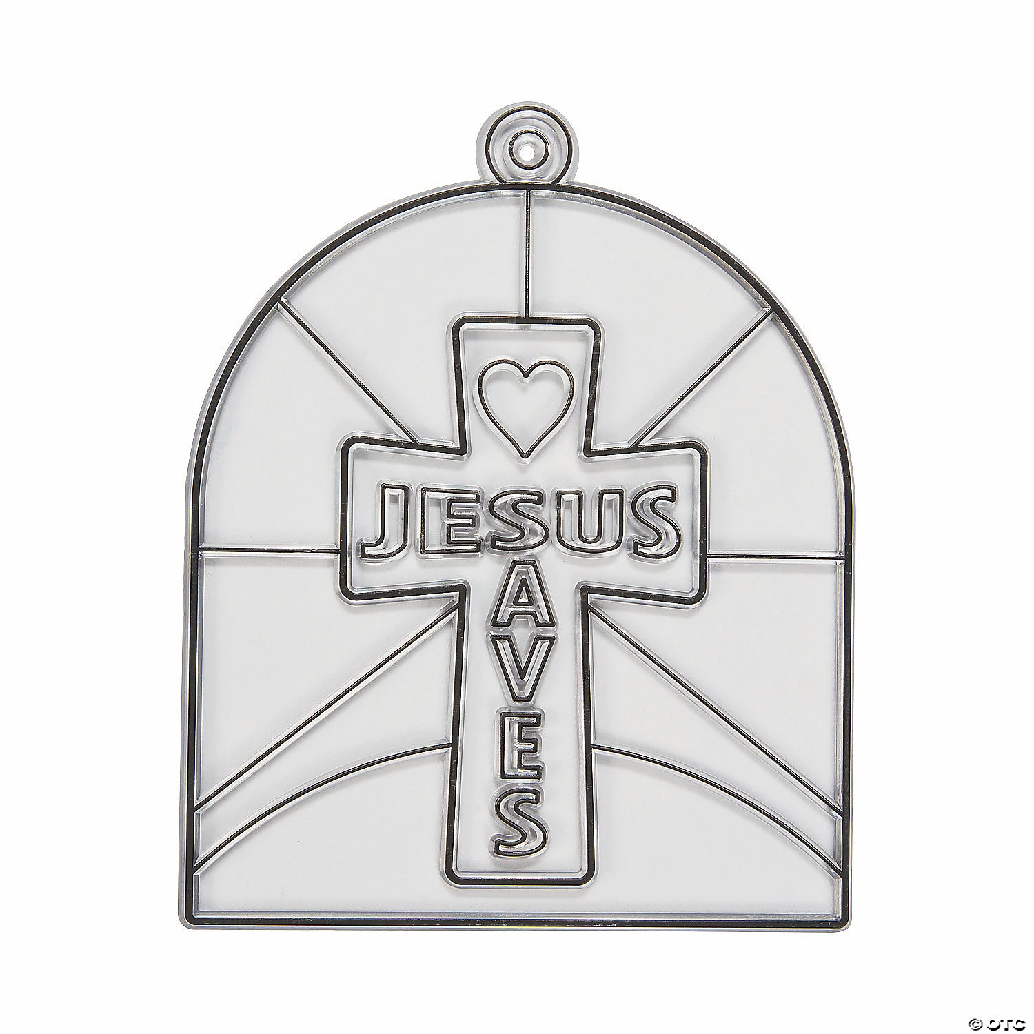 Express your love for Jesus in a creative and unique way! A great addition to religious craft supplies, these suncatchers feature a cross with text that reads “Jesus Saves”. An easy Easter DIY project for kids, little ones of all ages will have a blast using their own paints to bring these suncatchers to life. Once finished, hang in a window and let your work shine! Plastic. (2 dozen per unit) 4 1/2″ x 6″ © OTC