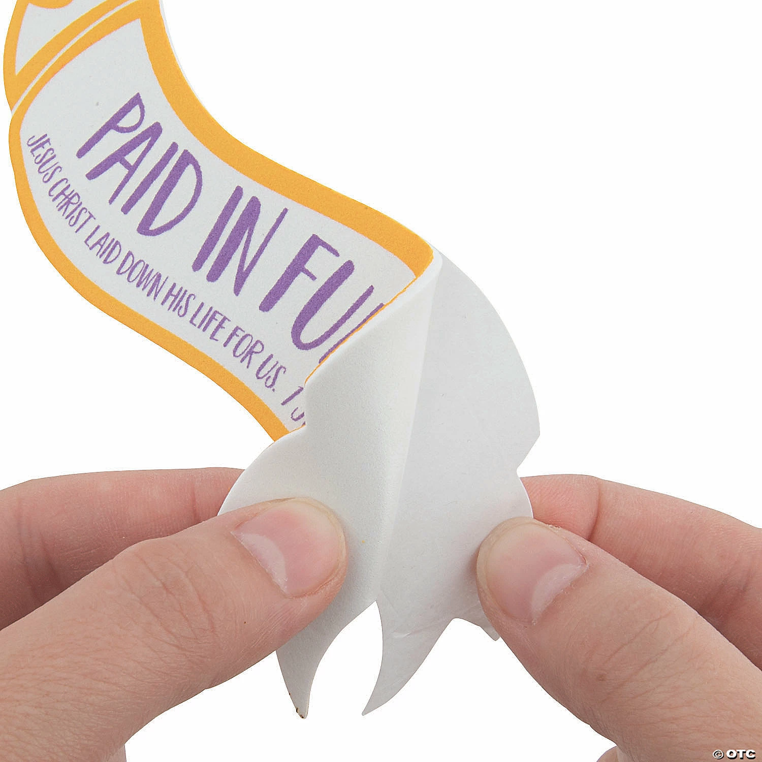 Teach children about the sacrifice Jesus made for us on the cross with this kidsβ craft project! With the crown of thorns, βPaid in Fullβ and a Bible verse from the Book of John, the religious craft is a great addition to Easter Sunday School lessons. Use the craft activity to prompt discussion about Jesusβ death and resurrection. Includes self-adhesive foam pieces and satin cording. 6 1/2″ x 8″ Makes 12. All craft kit pieces are pre-packaged for individual use. Kits include instructions. Β© OTC
