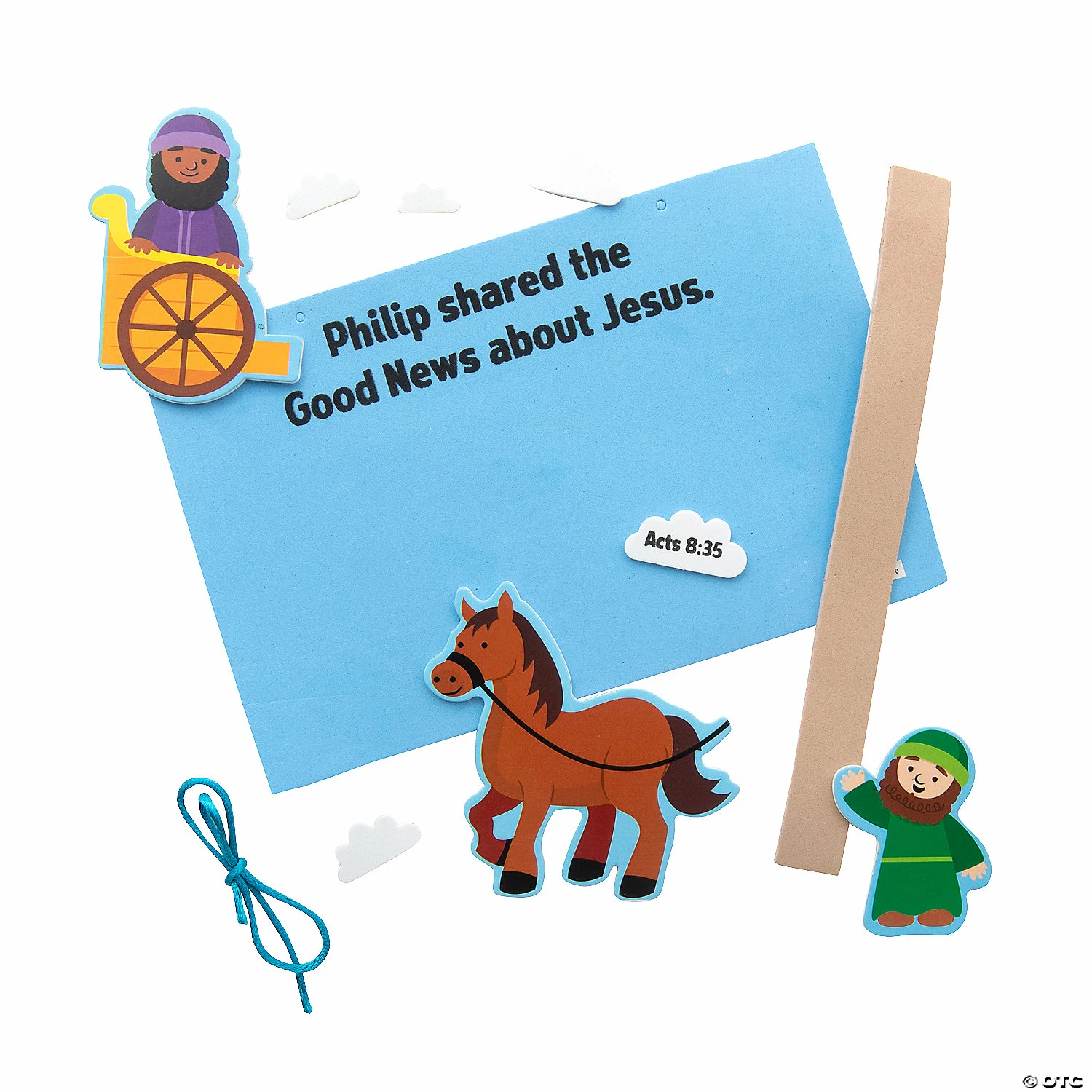 In the Book of Acts, Philip is eager to share the Good News with everyone he encounters. Help Sunday School kids learn about the importance of knowing and sharing Scripture with this cute and simple craft kit. Kids will enjoy this peel-and-stick craft and teachers will appreciate the ease at which the craft can be completed. Includes self-adhesive foam pieces and satin cording. 6″ x 5 1/4″ Makes 12.Β All craft kit pieces are pre-packaged for individual use. Kits include instructions. Β© OTCPhilip Shares Good News Sign Craft Kit Instructions
