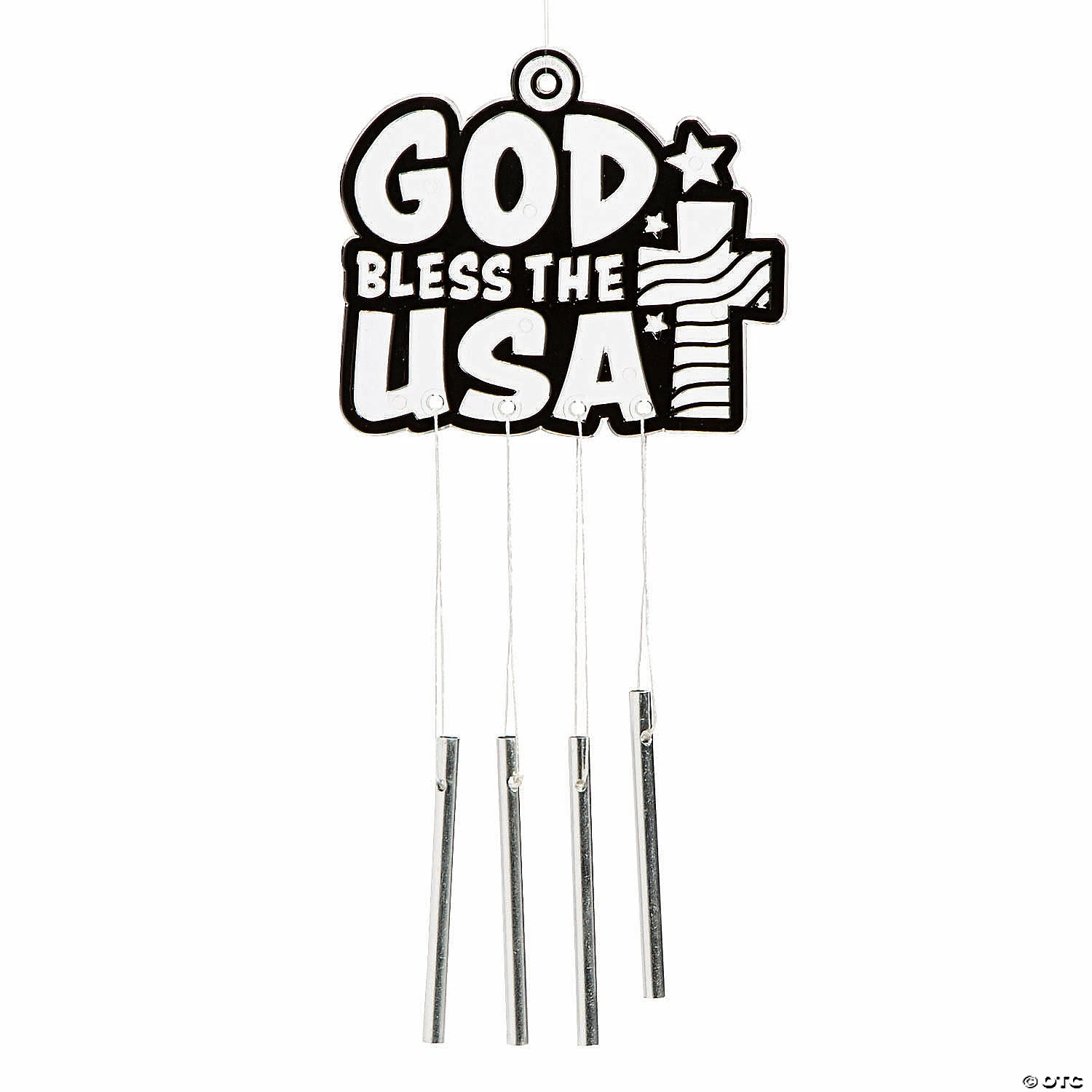 VBS students and Bible campers can let their patriotic pride ring with paint-it-yourself God Bless the USA suncatcher wind chimes. The faith-filled, American spirit in these DIY kidsβ craft activities make them a great church, Sunday School or Vacation Bible School art project for Memorial Day, Veteranβs Day or Fourth of July. Each plastic suncatcher hangs 9 1/4″ and has 4 metal chimes. We recommend using suncatcher paint or suncatcher paint pens, sold separately on this site. Β© OTC