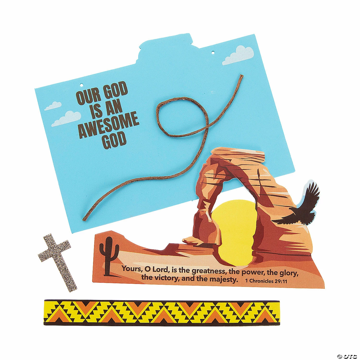 Kids learn that our God is an awesome God in Southwest VBS β summarize their learning in one fun craft activity with this sign! Southwest VBS kids can create their own Southwest VBS sign to display at home featuring Scripture from 1 Chronicles 29:11. This simple peel-and-stick craft activity is easy for kids to complete and simple for volunteers to lead! Includes self-adhesive foam pieces and satin cording. 7″ x 5 1/4″Β Makes 12. All craft kit pieces are pre-packaged for individual use. Kits include instructions. Β© OTC