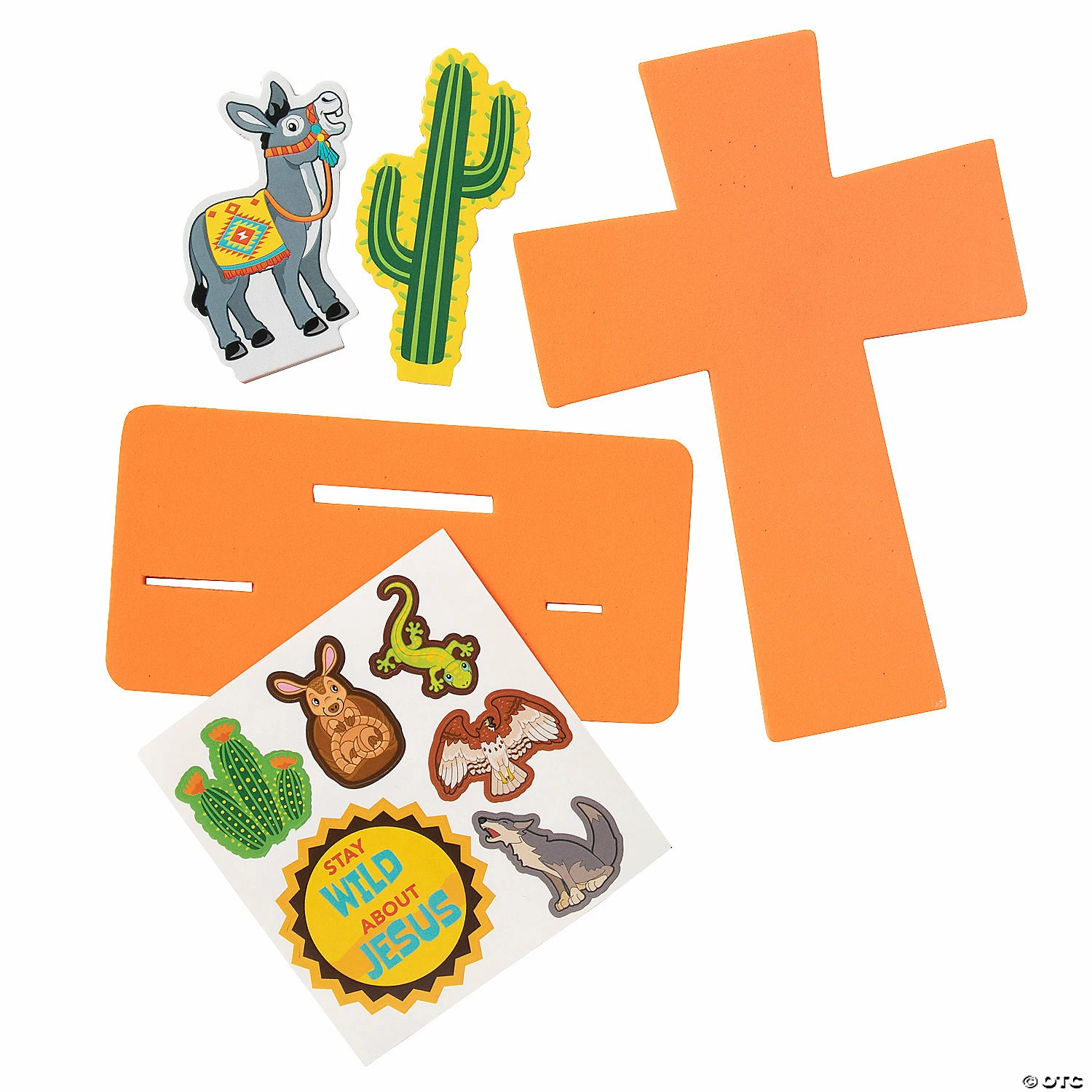 Help VBS kids stay wild about Jesus with this fun craft kit! Featuring Southwest VBS themes and messaging, this stand-up cross is easy to make and even easier to display afterward. Add this kit to your Southwest VBS craft supplies list for an activity kids will enjoy β and craft leaders will appreciate! Includes self-adhesive foam pieces and paper stickers. 6″ x 3″ x 7 1/4″Β Makes 12. All craft kits are pre-packaged for individual use. Kits include instructions. Β© OTCSouthwest Stand Up Cross Instructions
