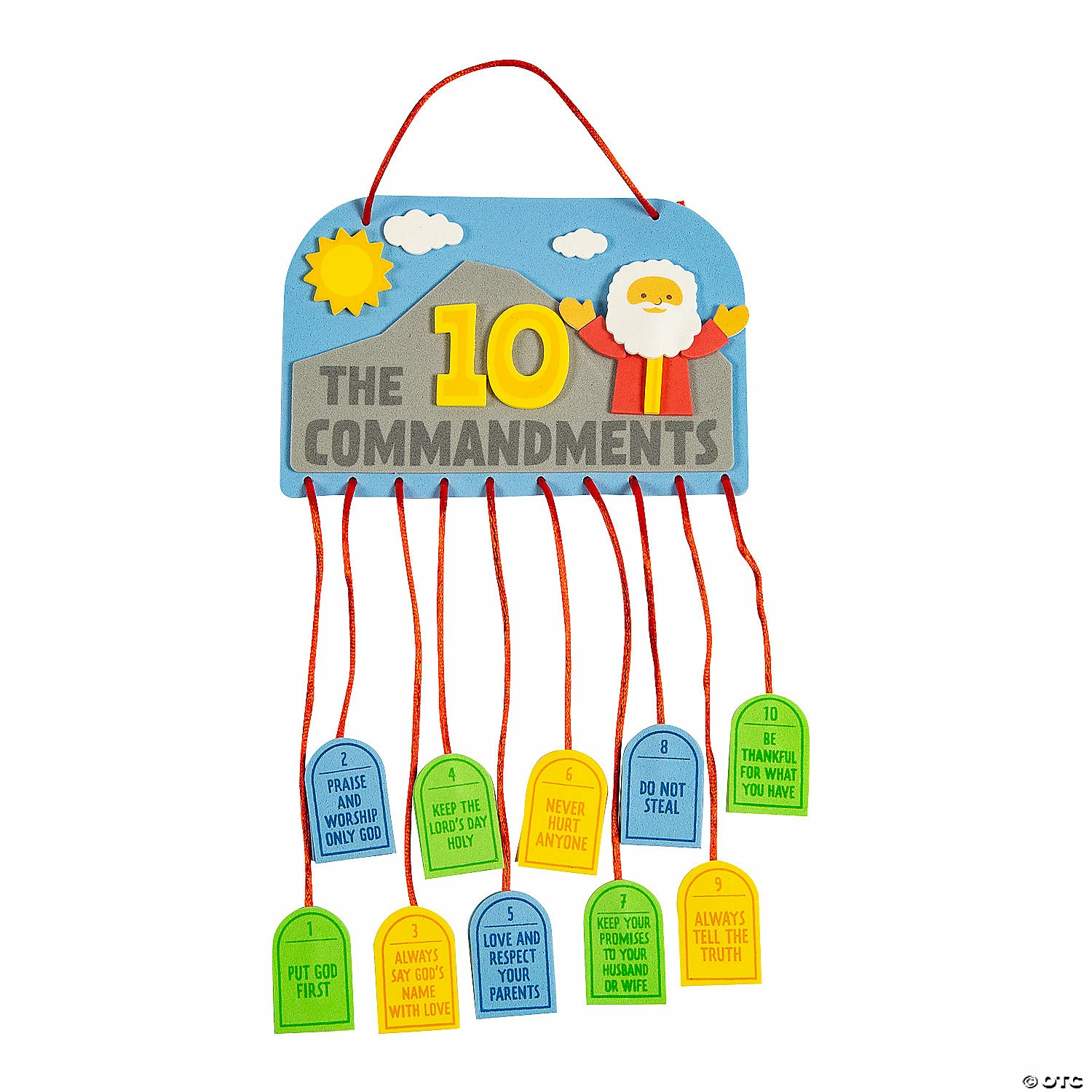 Help kids learn some of the fundamentals of faith with this simple and fun craft kit. The completed craft is a mobile featuring the Ten Commandments rephrased in a way thatβs easy for kids to understand and follow. This fun peel-and-stick craft is a great choice for a Sunday School lesson on Moses and the Old Testament. Includes self-adhesive foam pieces and satin cording. 6″ x 8 1/2″ Makes 12. All craft kit pieces are pre-packaged for individual use. Kits include instructions. Β© OTC