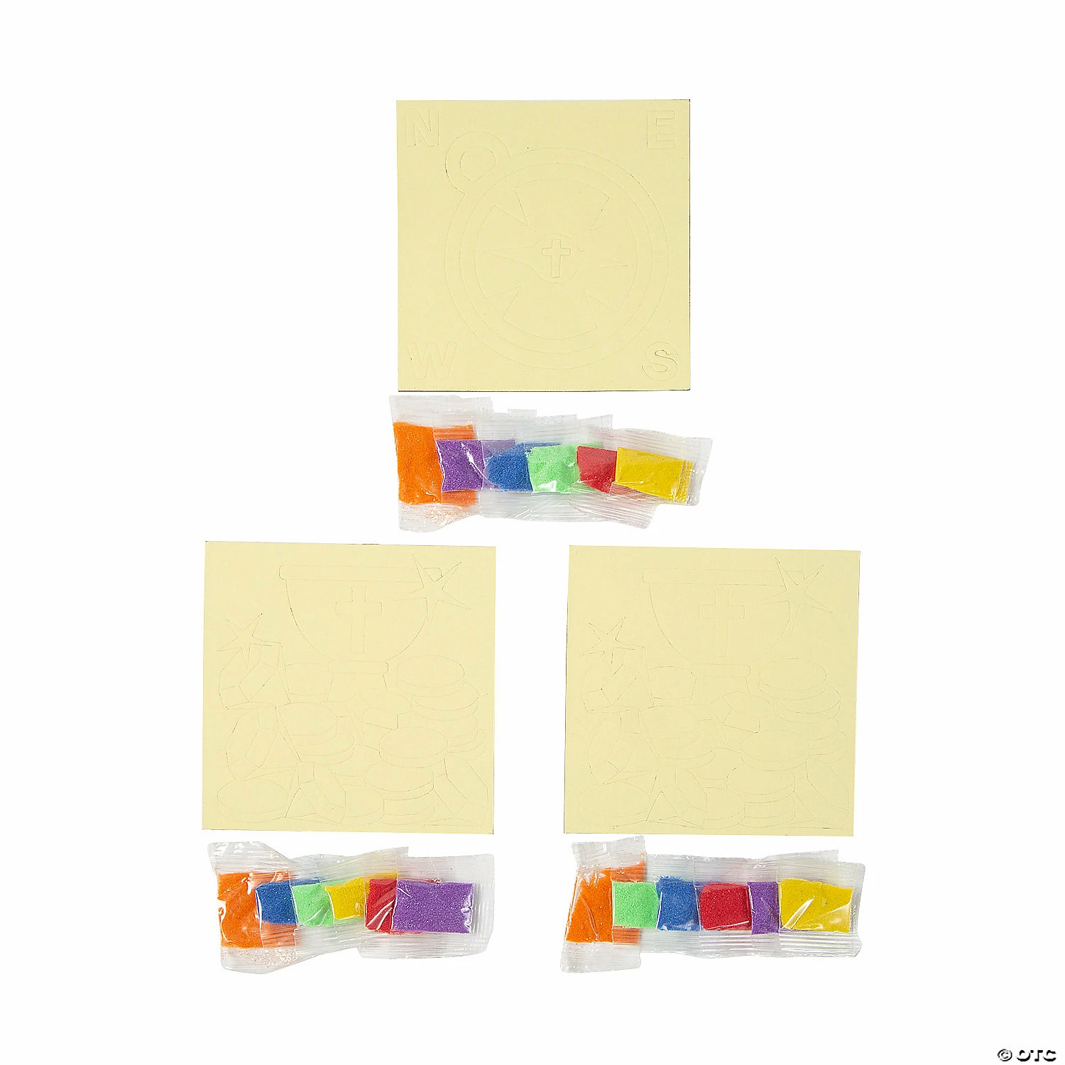 This sand art kit is a great choice for a Treasure Hunt VBS arts and crafts activity! Kids use the assorted sand to create fun sand art images including a compass, an explorerβs backpack and more. With everything included thatβs needed to complete the craft, this kit makes a sand art project easier than ever! Each kit includes assorted bags of sand. Self-adhesive cardboard. (1 dozen per unit) 5″ x 5″ © OTC